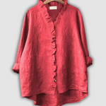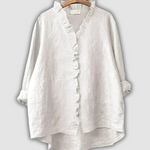 Elegantní lněná blůza v teplé hnědé barvě spojuje jednoduše s nadčasovým stylem. Výstřih do V s jemným volánkem dodává ženskou jemnost, zatímco volný střih zajišťuje pohodlí po celý den.