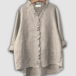Asymetrický lem s delším zadním lemem dodává moderní, ale zároveň elegantní vzhled, který se hodí pro práci, schůzky i volný čas. Dlouhé rukávy s možností ohrnutí nabízí flexibilitu a komfort v každé situaci.