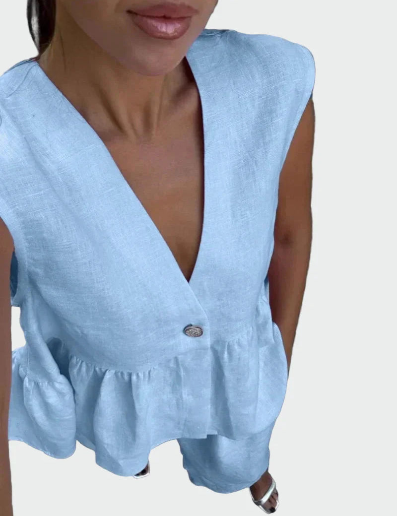 Letní Vzdušný Dvoudílný Set Lehké Topy a Šortky na Horké Dny