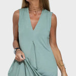 Letní Set Šaty bez Rukávů a Cardiganem Zemité Zelené