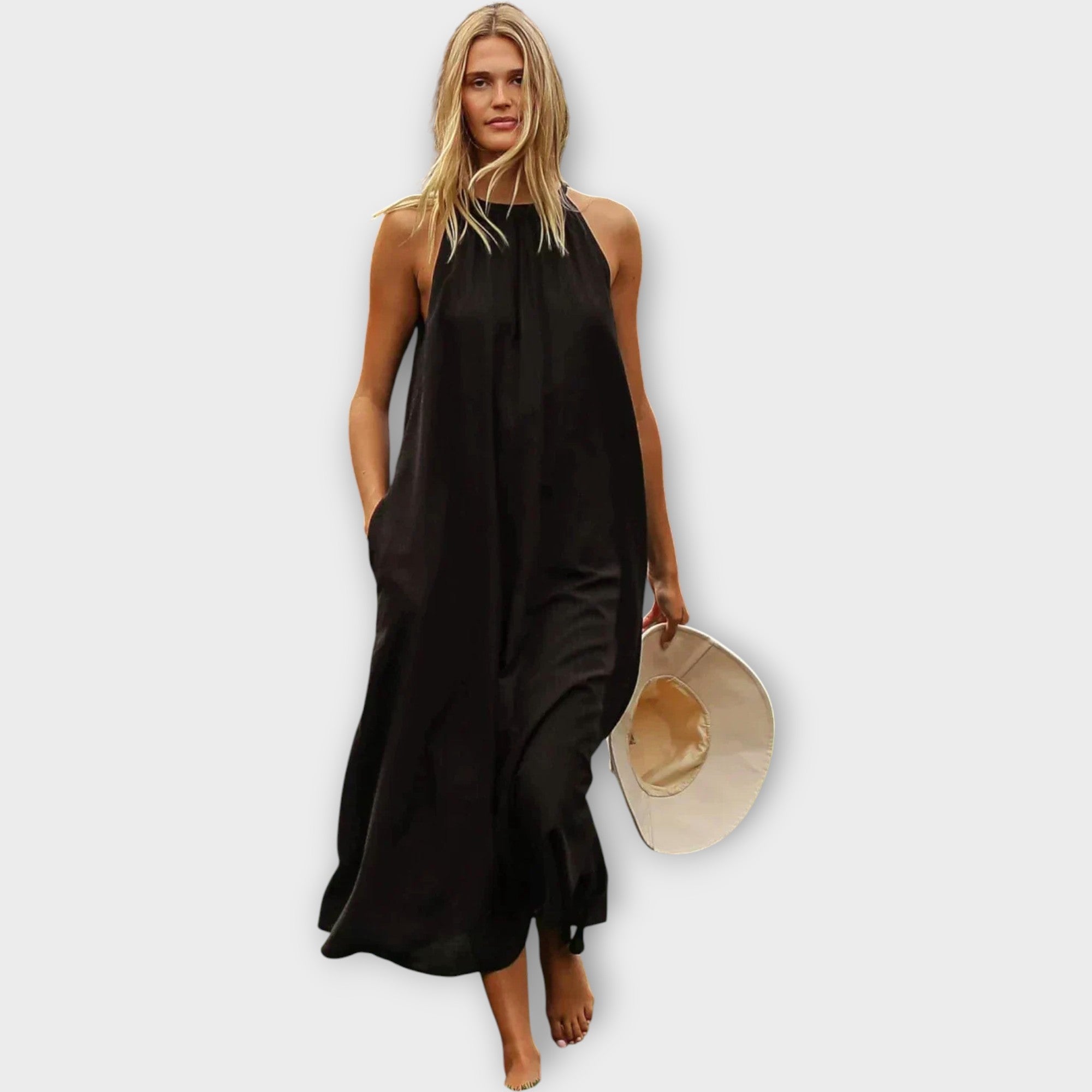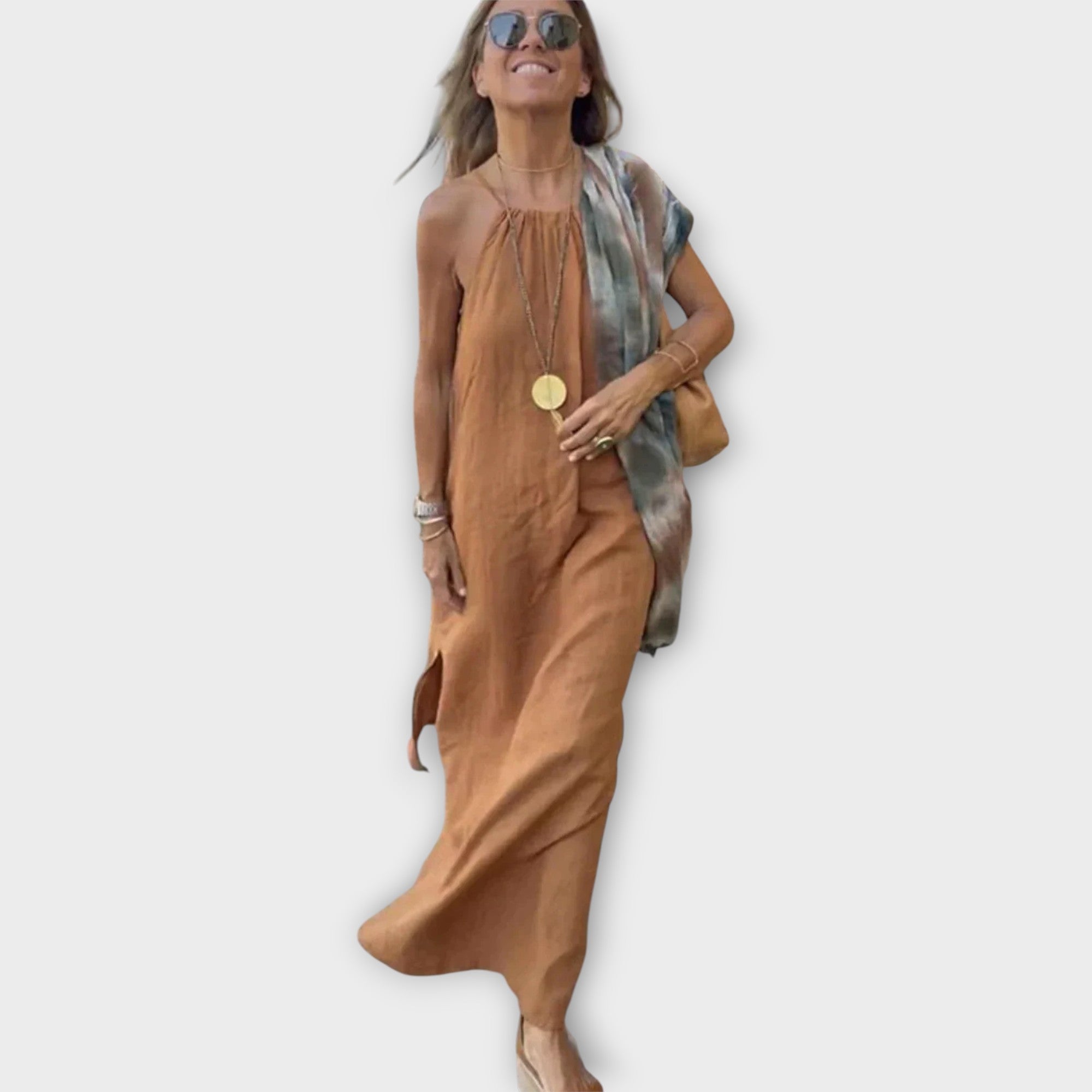 Vzdušné maxi šaty s minimalistickým designem zdůrazňují přirozenou eleganci díky jednoduchosti. Volný střih a jemná textilie zaručují pohodlí a volnost pohybu po celý den, zatímco čistý vzhled se hodí jak na každodenní nošení, tak na zvláštní příležitosti.