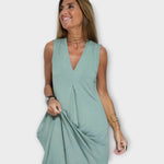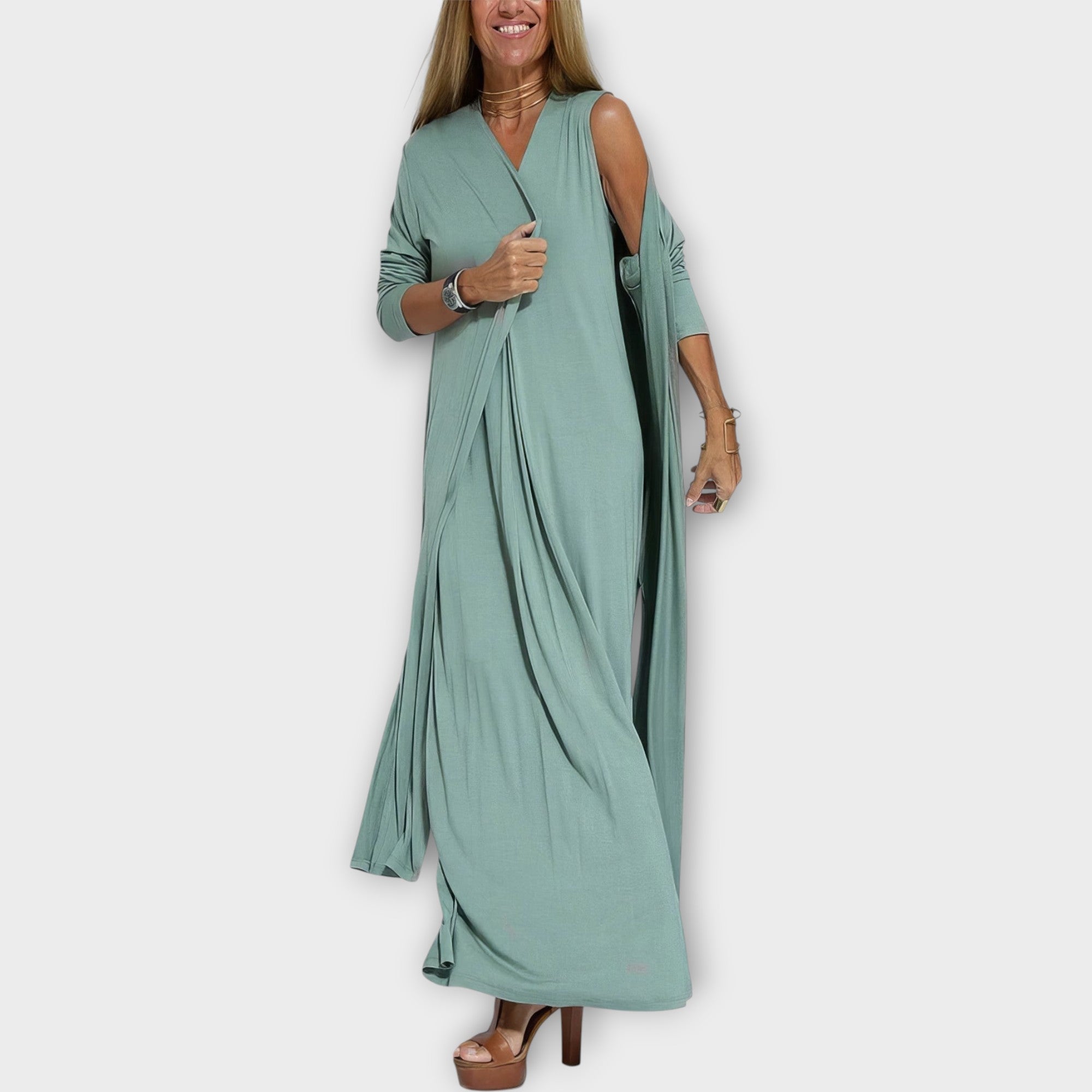 - Univerzální střih – bez rukávů a maxi délka, která lichotí každé postavě a hodí se ke každému stylu.