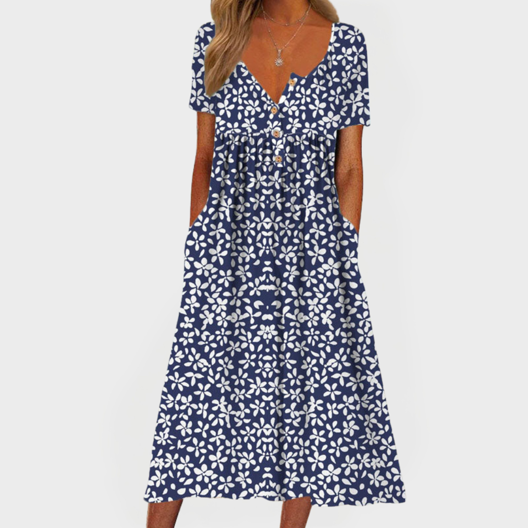 Elegantní Letní Šaty Pro Každodenní Nošení S Modrým Vzorem