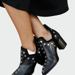 Vyneste svůj styl do popředí s kotníkovými botami s hroty a masivním podpatkem, které spojují výrazný charakter s pohodlím pro dlouhé nošení. Dekorativní kovové prvky dodávají botám dravý tón a okamžitě dodají vašemu outfitu dynamickou jiskru.
