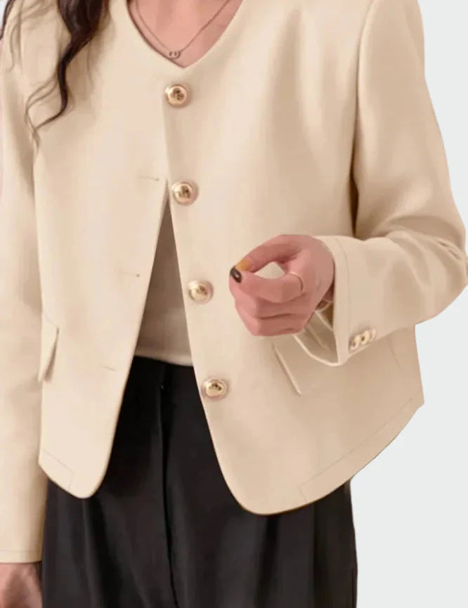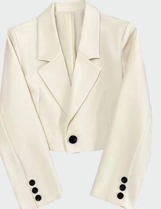 Minimalistické Krátké Sako s Elegantním Designem Límcem