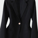 Objevte sako s moderní, elegantní linií, které podtrhuje ženskost a styl v každé situaci. Nadčasový střih s jemným detailem jednoho tlačítka na přední části dodává vašemu vzhledu lehkost a sofistikovanost, zatímco čistá linie podtrhuje minimalistický charakter.