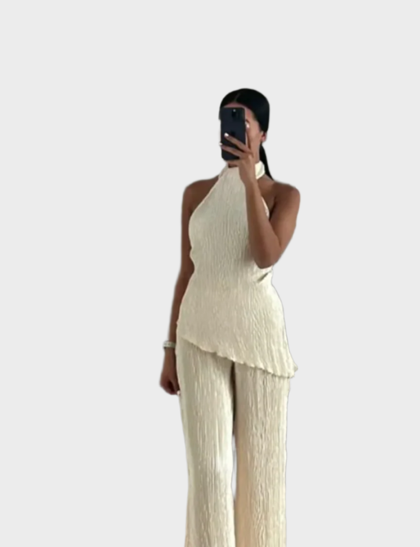 Elegantní Plisovaný Set Krémové Barvy Večerní Příležitosti