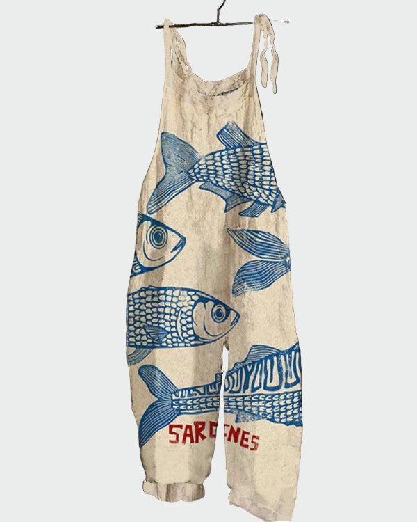 Retro Květinový Overal S Mořským Nádechem Pro Letní Dny