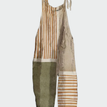 Objevte retro šarm s naším overalem s širokými nohavicemi. Geometrické pruhy a barevné kontrasty poskytují jedinečný vizuální efekt, zatímco volný střih zajišťuje pohodlí a styl po celý den. Tento model kombinuje výrazný design s nositelností, takže se hodí pro ležérní i kreativní outfit.