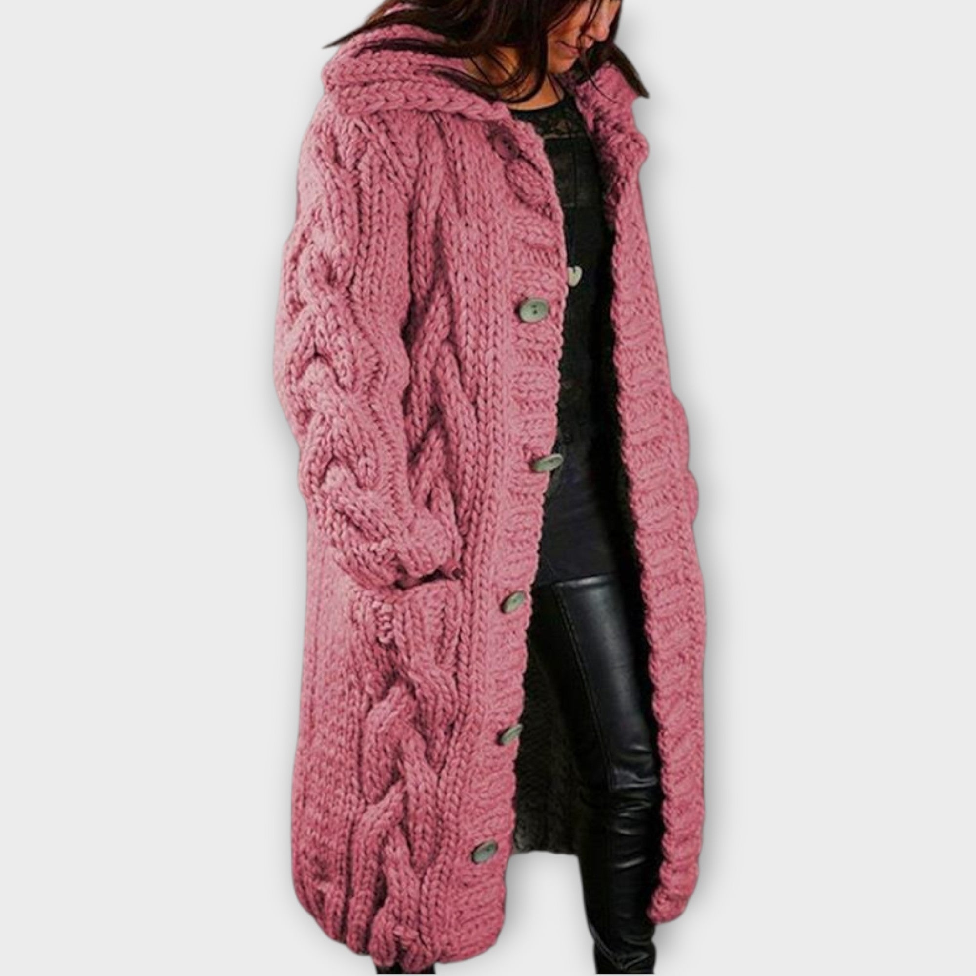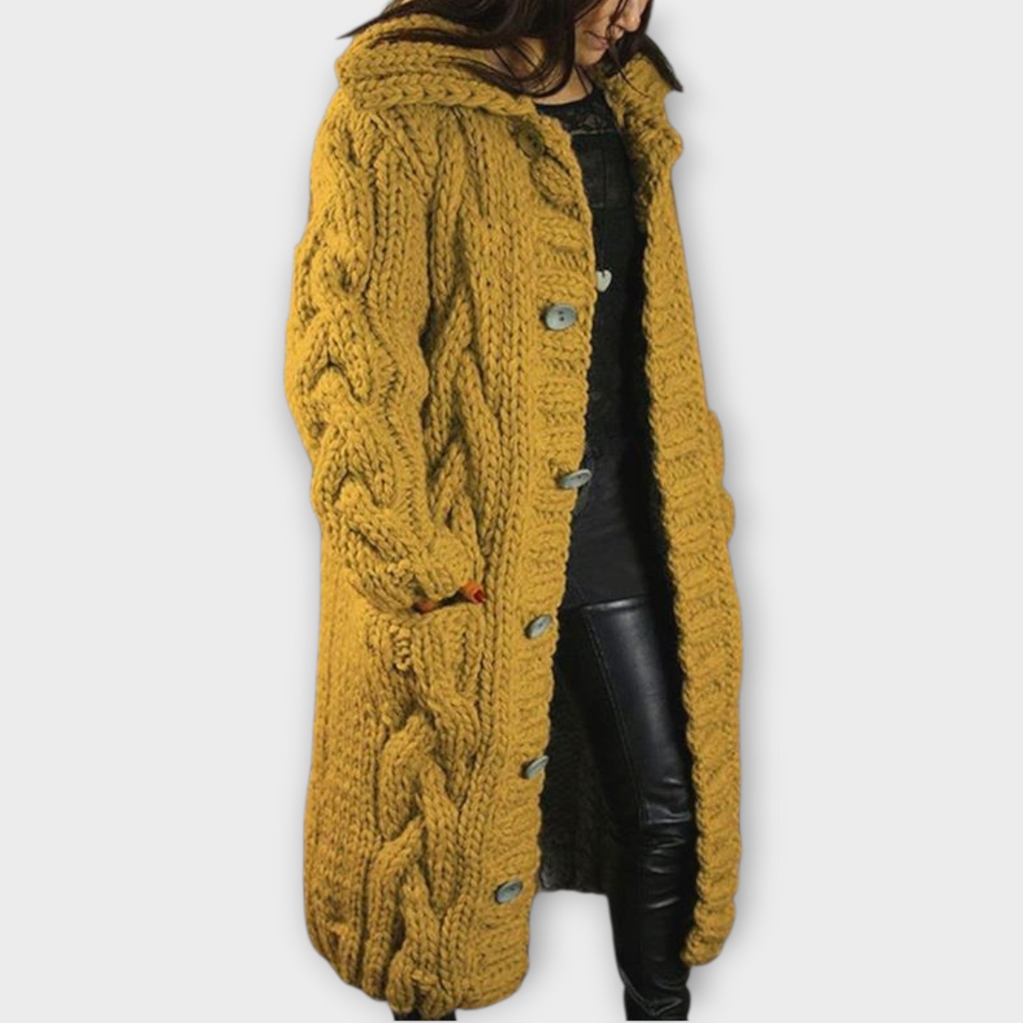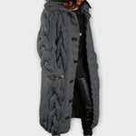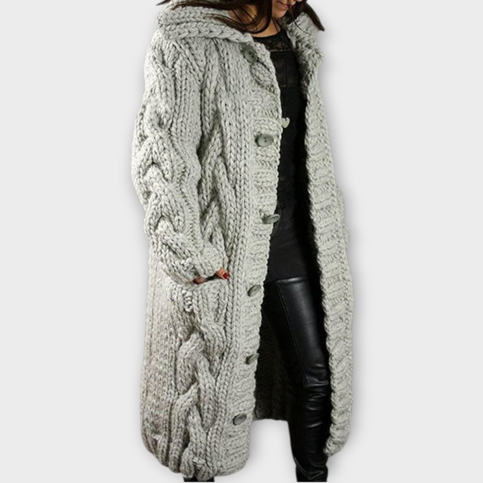 Elegantní kabát Karina vás zahalí teplem, strukturou a nadčasovým stylem. Je vyroben z měkké, prodyšné směsi úpletů a má oversized design s copánkovým vzorem, který dodává pohodlí i charakter. Celková délka kabátu jemně zakrývá bříško a elegantně splývá, zatímco kapuce a boční kapsy dodávají praktickou eleganci. Ať už se chystáte na pohodovou procházku nebo na setkání s přáteli, kabát Karina vám zajistí stylový, pohodlný a nenuceně rafinovaný vzhled.