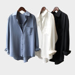 - Detaily: klasický límec, dlouhý rukáv s manžetou, přední kapsa a knoflíky pro snadné zapínání.
