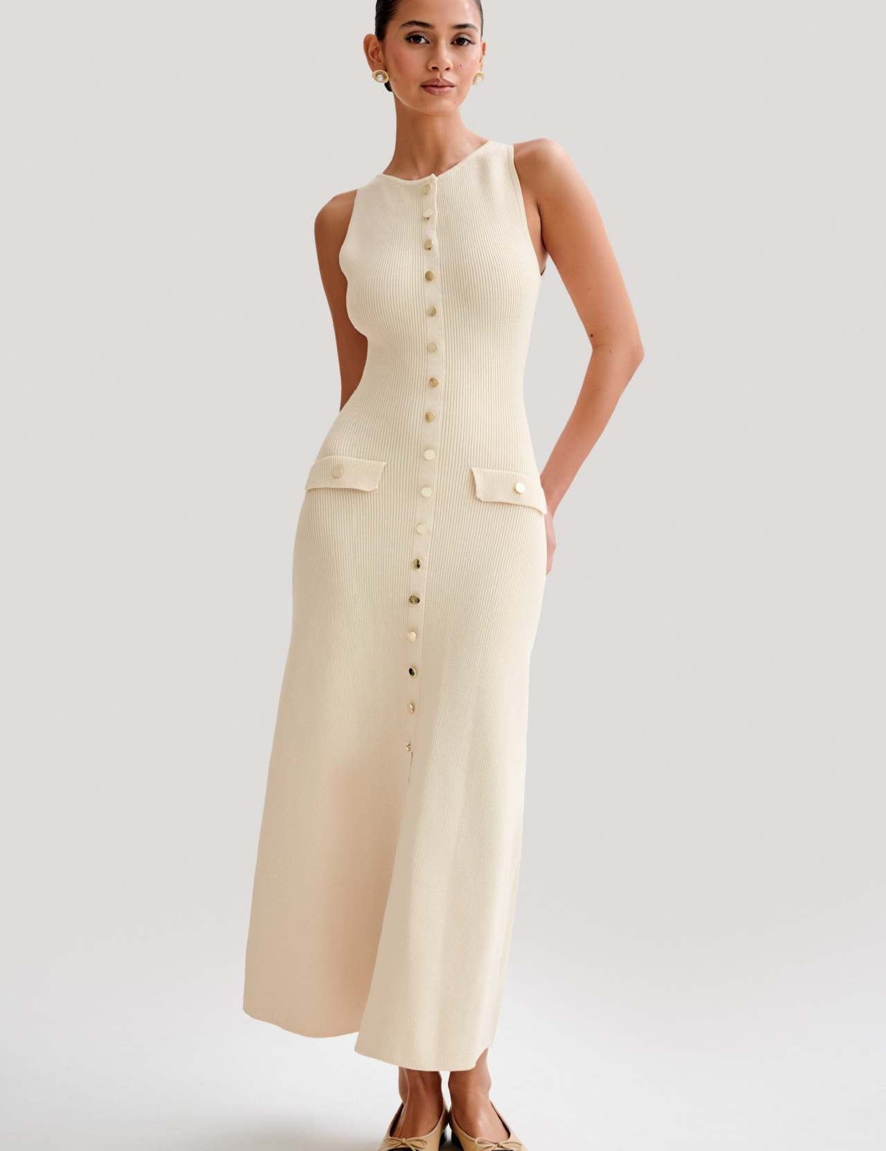 Gabriella Elegantní Pletené Šaty Bez Rukávů S Knoflíky