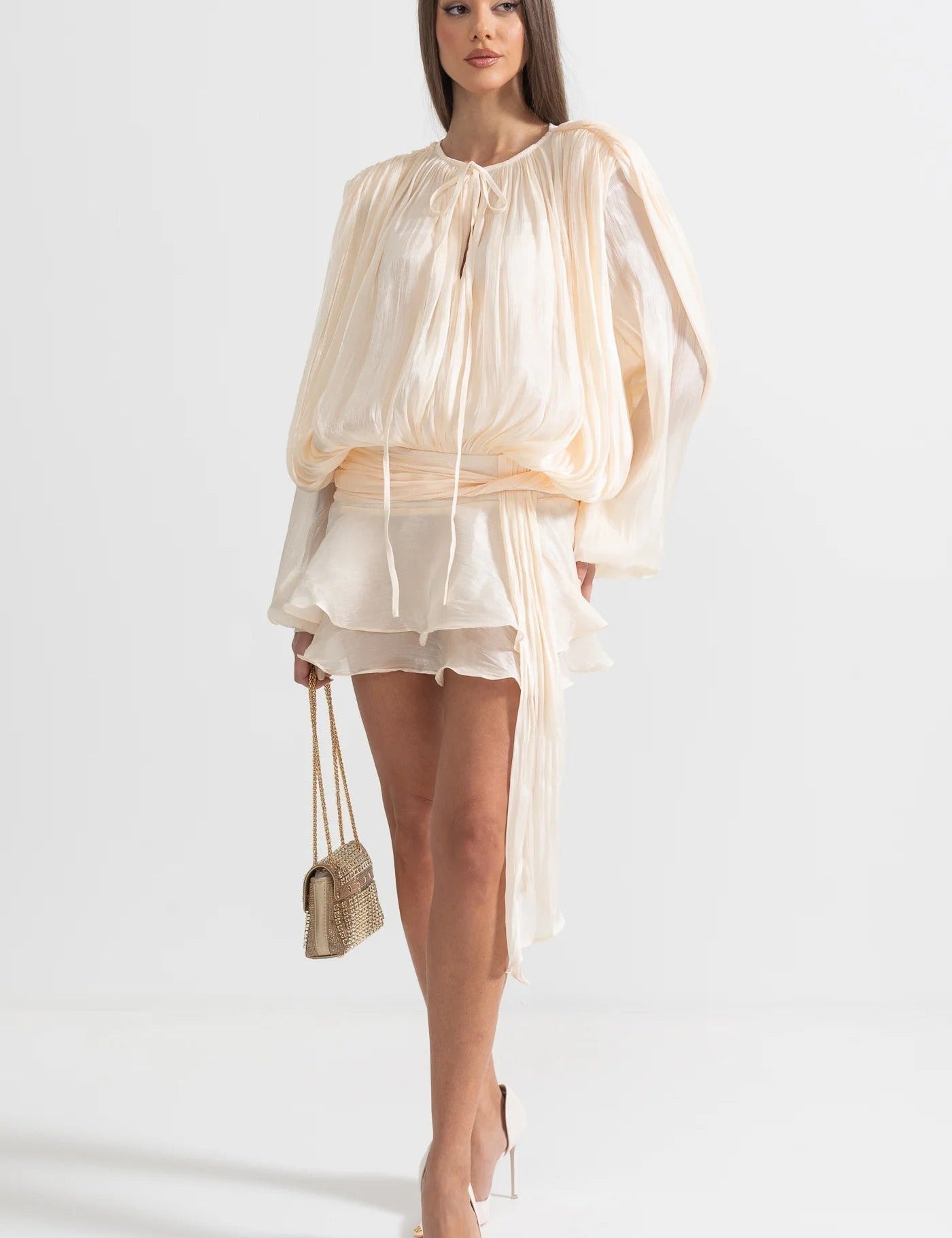 Elegantní Lyanna Boho Krátké Šaty Dekolt Se Šňůrkou A Sukně