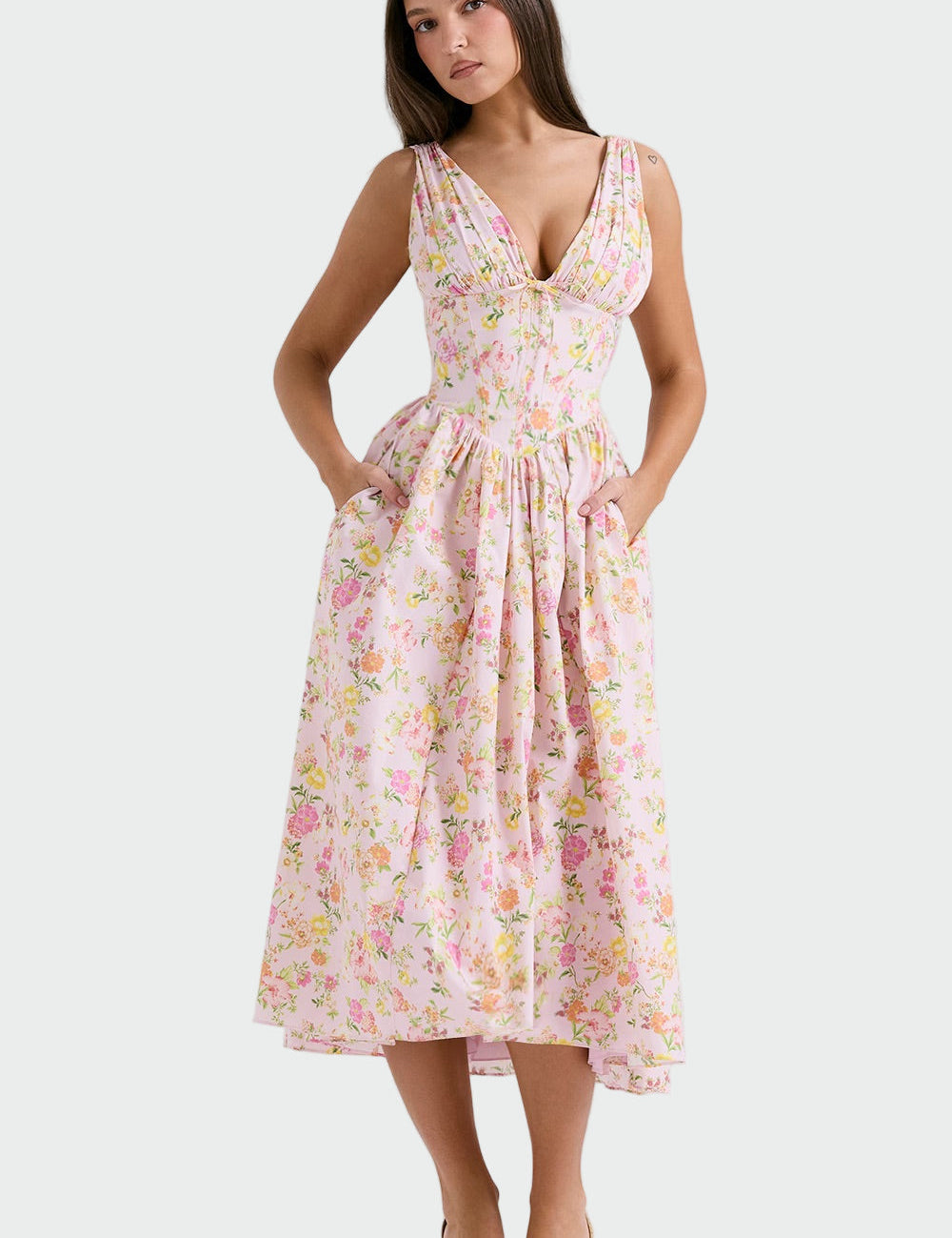 Romantické Dlouhé Šaty S Korzetem A Květinovým Vzorem