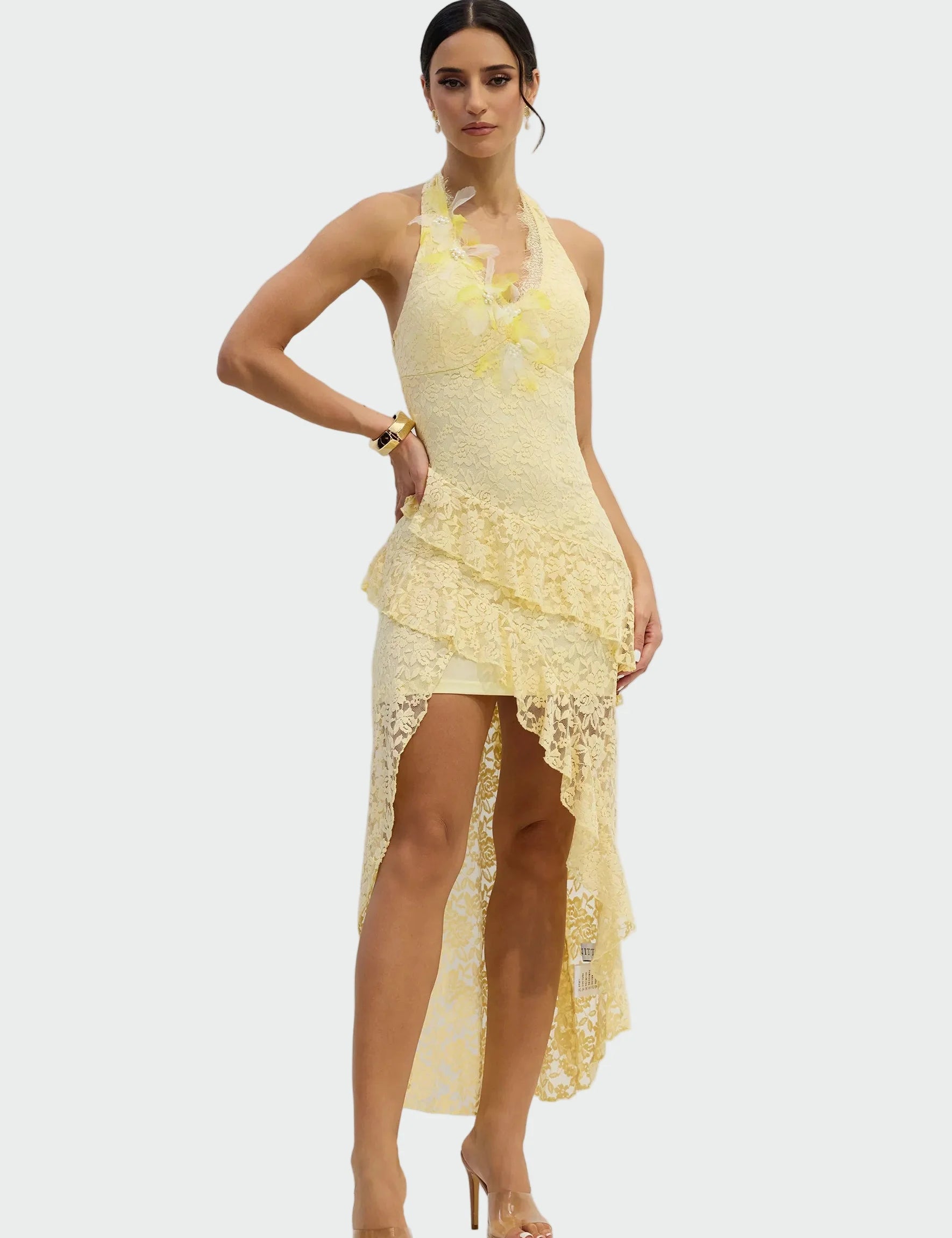 Žluté Midi Šaty Korzetový Výstřih Aline Elegantní Letní