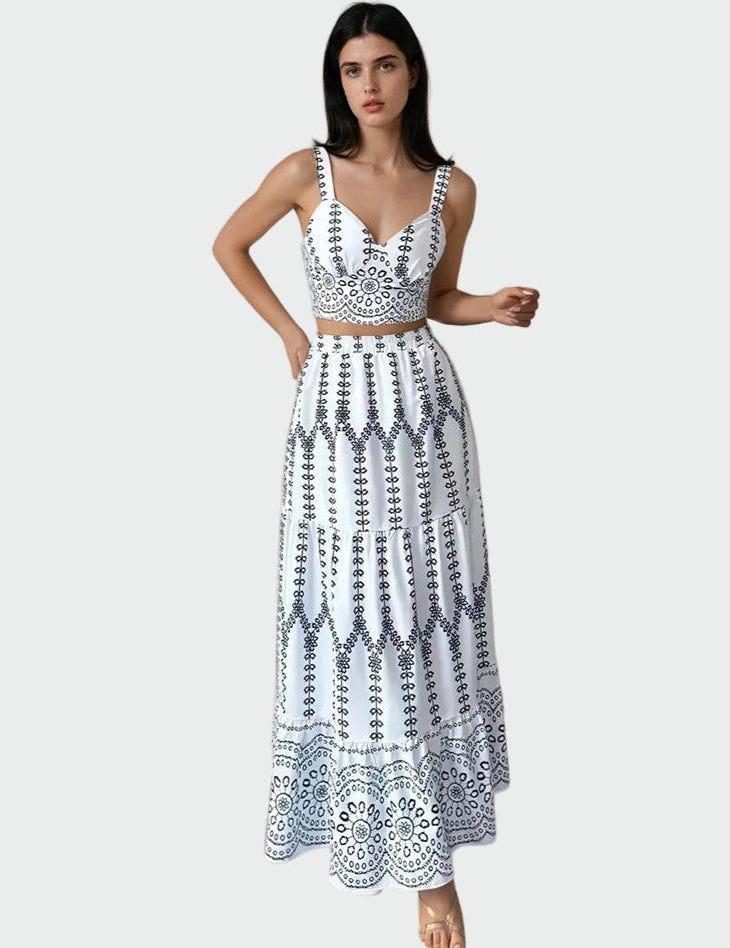 Bílý Dvoudílný Set Středomořská Harmonie s Výšivkami