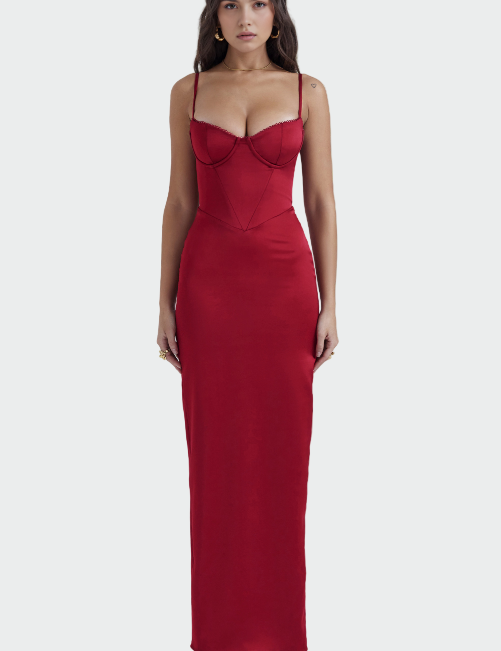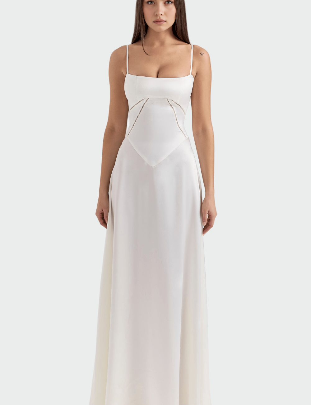 Saténové Maxi Šaty S Tenkými Ramínky Elegantní Design