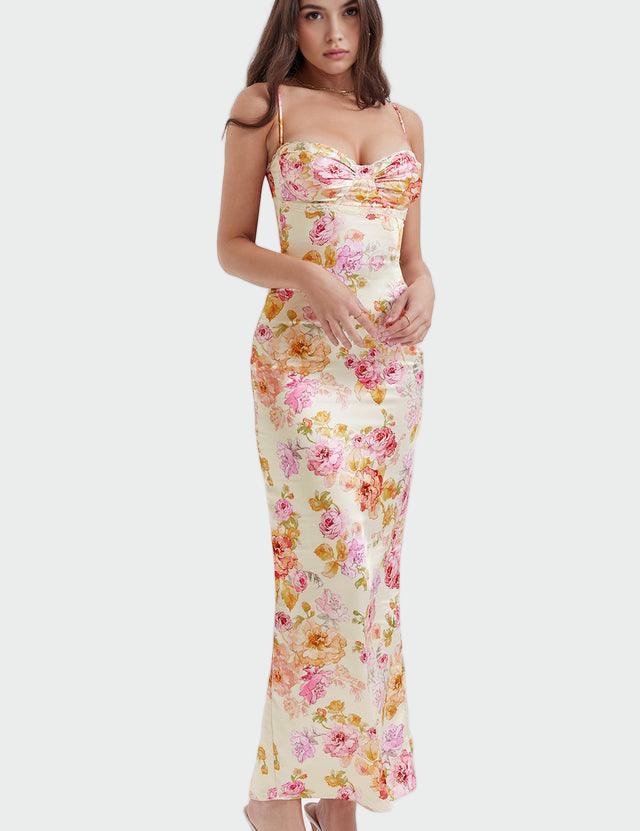 Dámské Maxi Šaty S Tenkými Ramínky A Květinovým Vzorem