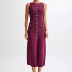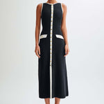 Objevte Gabriella — elegantní pletené šaty bez rukávů s knoflíky po celé délce, které dodávají nadčasový šarm a všestrannost vašeho šatníku. Rovný střih rozšířit a kapsy klasický, vyvážený vzhled s knoflíky na přední straně přidávají sofistikovaný detail.