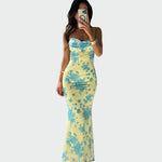 Saténové šaty s květinovým vzorem nabízejí výjimečnou smyslnost a jemnou eleganci pro zvláštní okamžiky. Jedinečný květinový motiv romantiku a ladnou siluetu. Drapovaný dekolt přidává sofistikovaný nádech, zatímco úzký střih podtrhuje křivky pro svůdný vzhled.