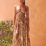 Okouzlující maxi šaty Zlatá Aura přinášejí výrazný glam pro večerní i letní příležitosti. Bohatý paisley vzor v odstínech zlaté, a terakotové vytváří jedinečný jedinečný dojem a podtrhuje vaši ženskost.