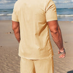 Elegantní letní set Muži nabízí dokonalou rovnováhu mezi sofistikovaným vzhledem a lehkým komfortem během horkých dnů. Vyrobený z lehké a prodyšné tkaniny, set udrží chlad a pohodlí po celý den – ať už cestujete, trávíte čas na zahradní párty, nebo hledáte stylové, ale nenáročné oblečení pro každodenní nošení.