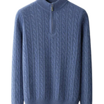 The Deneb Cashmere Woven Half-Zip is crafted for men who appreciate refined luxury and everyday comfort. Made from 100% pure cashmere, this sweater offers an ultra-soft feel with a sleek, structured fit—perfect for layering, business-casual wear, or relaxed elegance.