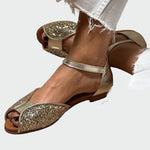 Φλάβια – sandály se třpytkami ve zlaté barvě, které dodají vašemu vzhledu okamžitý lesk. Tento model spojuje extravagantní třpyt s praktickým pohodlím pro pohodlné nošení na večírcích i speciálních událostech.