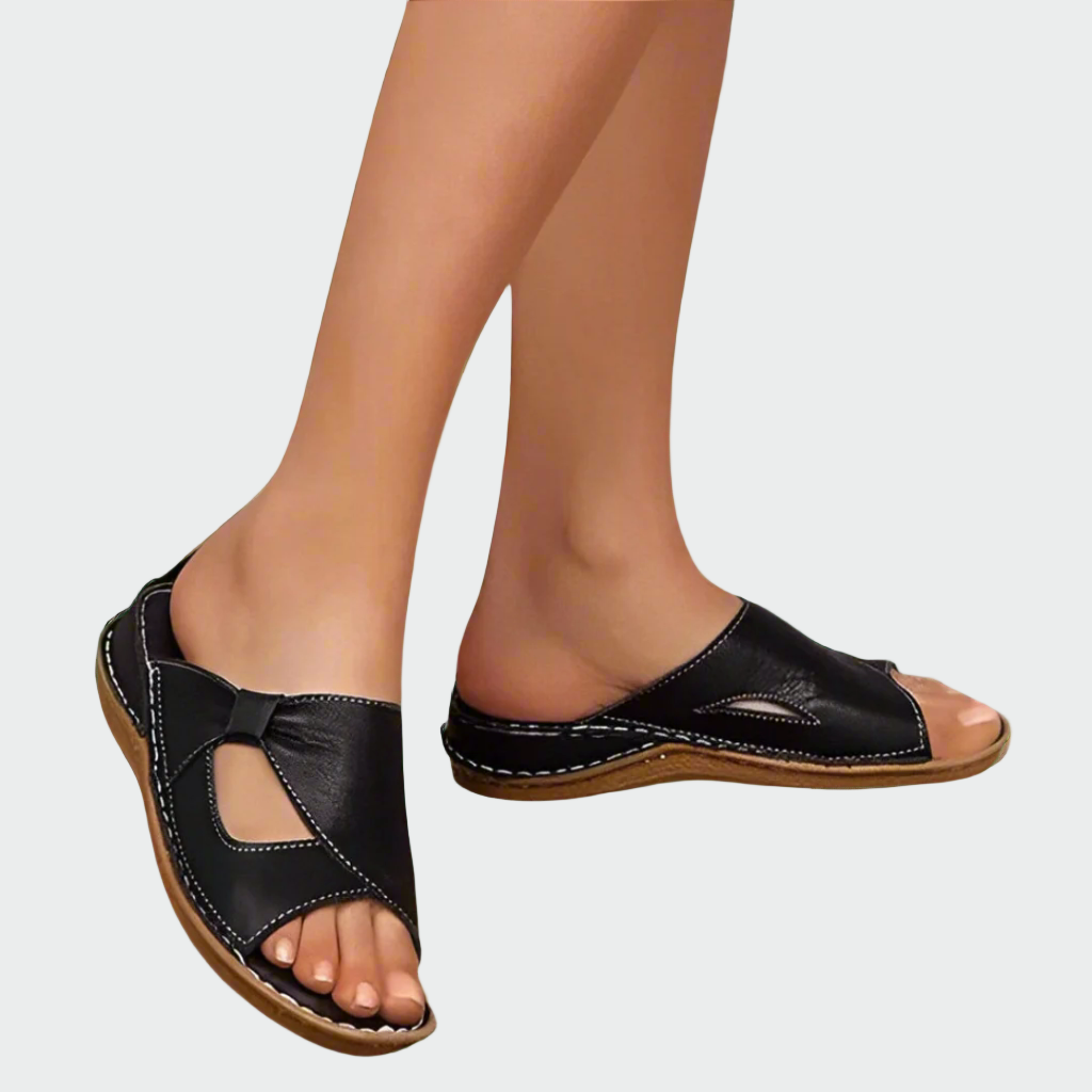 Nízké Sandály S Kontrastním Šitím A Otevřeným Předním Dílem