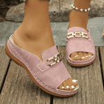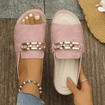 Chic komfort, který si zamilujete hned na první došlapání — Laura Orthopedic Leather Sandals pro ženy, které hledají oporu bez kompromisů ve stylu. Otevřený prst, měkký kožený svršek a stylový zlatý řetízek dodávají krok šmrnc, zatímco polstrovaná stélka podporuje nohu po celý den.
