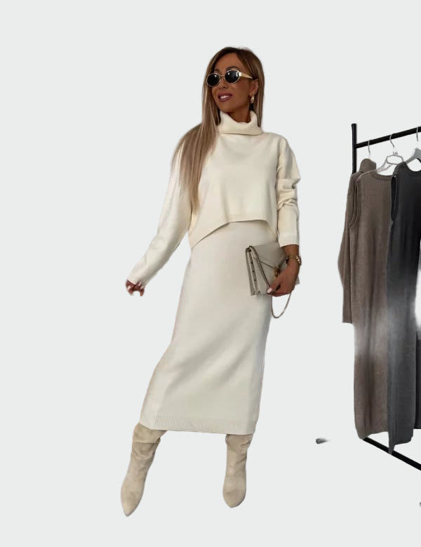Dvoudílný Set Šaty A Rolákový Svetr Pro Elegantní Vzhled