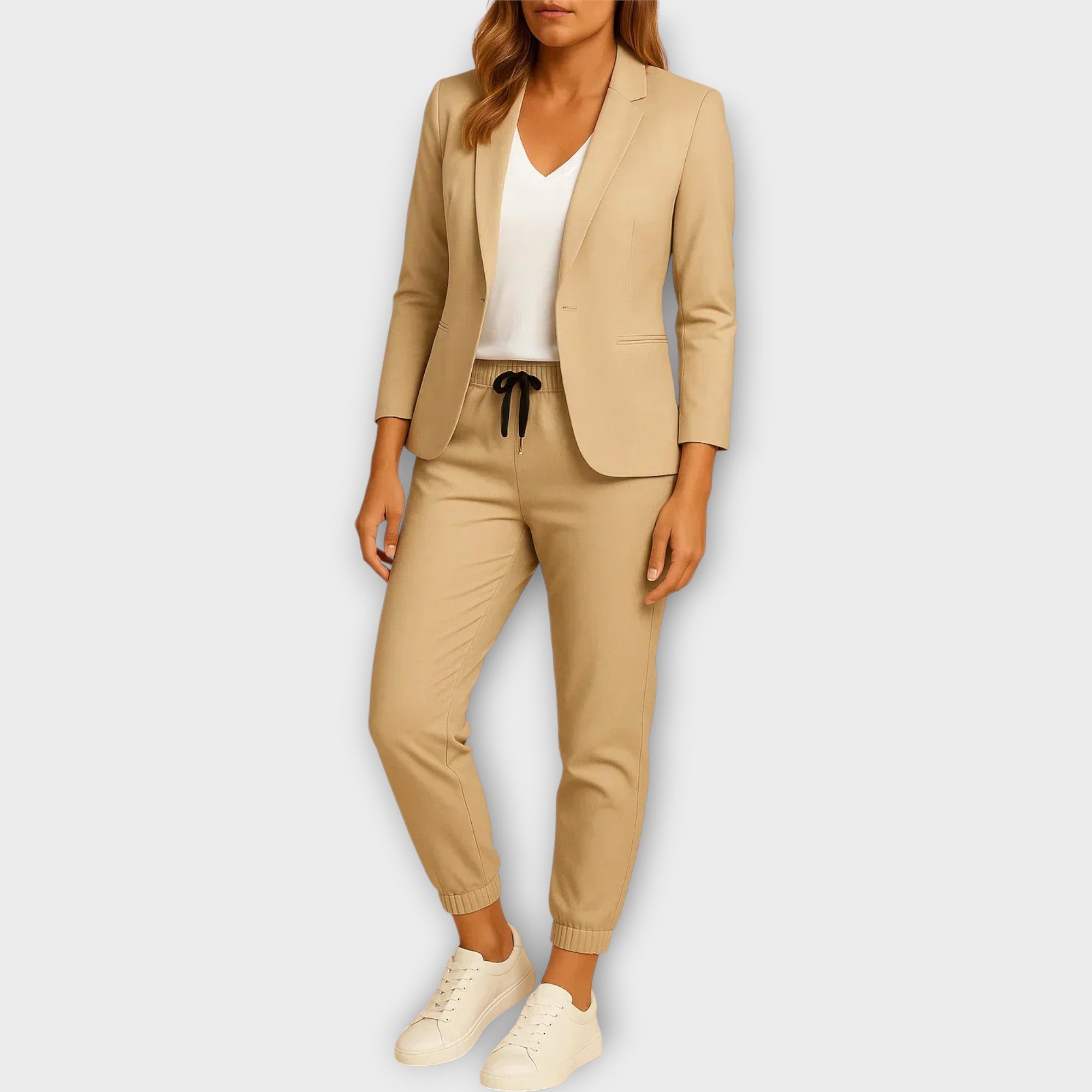 Elegantní set saka s kalhotami pro moderní vzhled spojuje styl a pohodlí a nabízí nadčasový, vytříbený dojem.