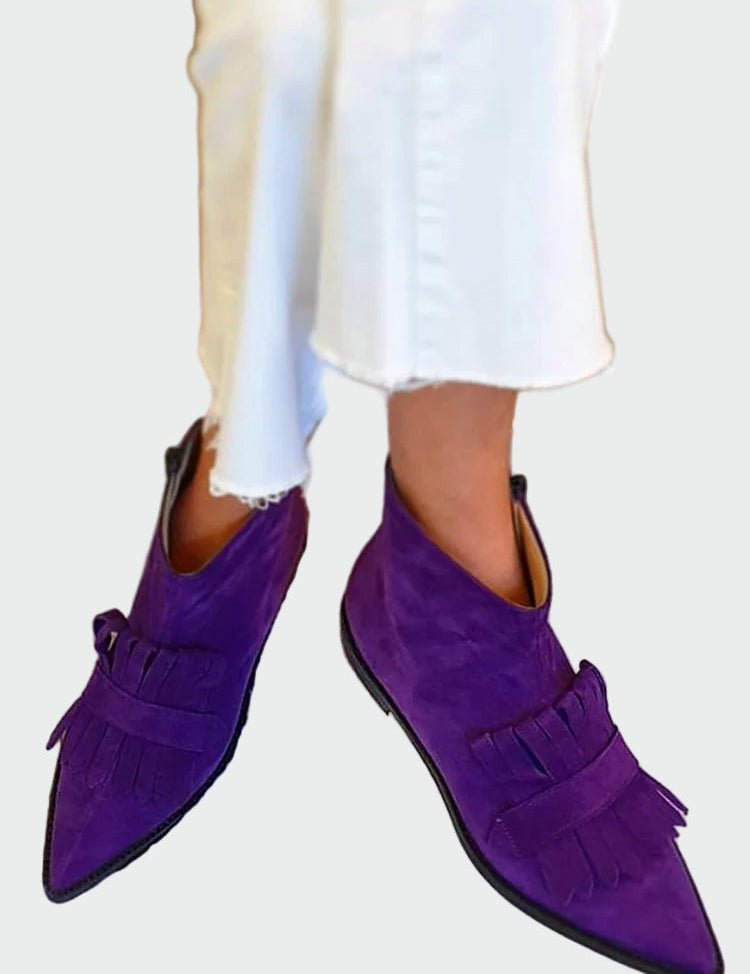 Kotníkové Boty S Ostrou Špičkou Dekorativními Třásněmi