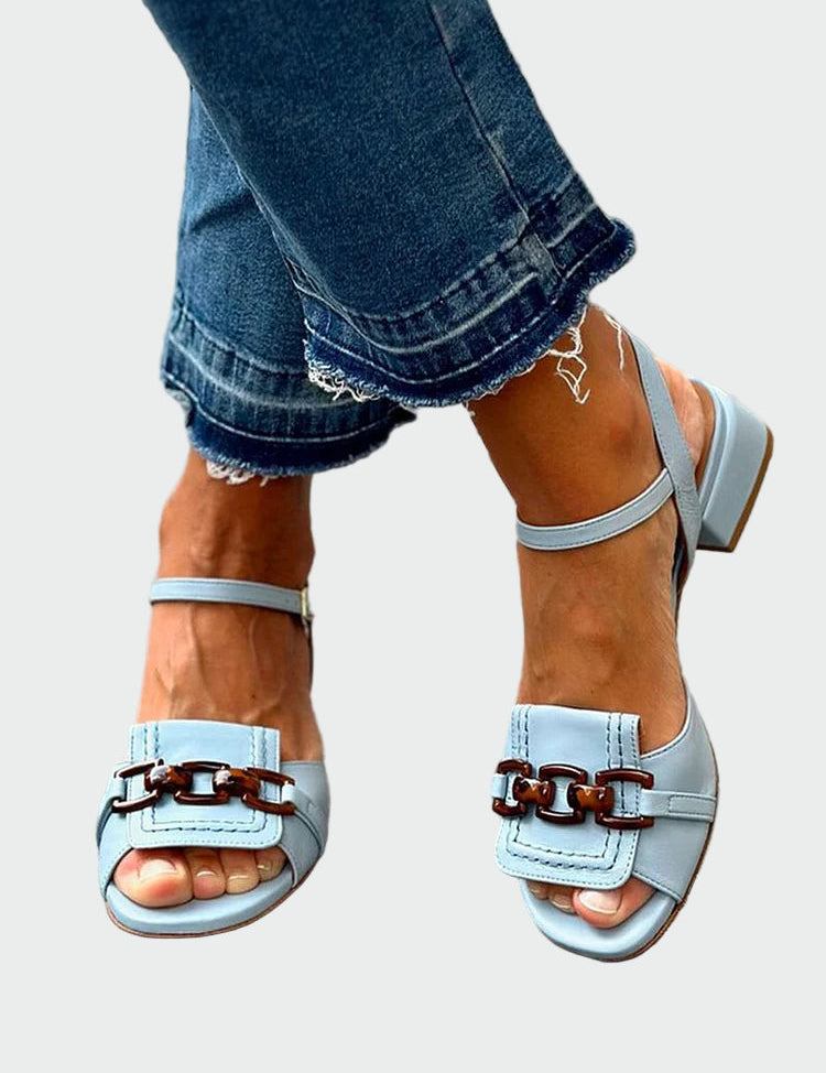 Elegantní Světle Modré Sandály S Řetízkem A Přezkou
