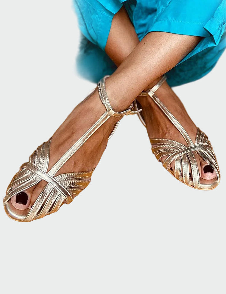 Elegantní Dámské Sandály Kovovým Leskem A Kotníkový Řemínek