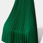 Dlouhá plisovaná saténová sukně je výrazný kousek pro každý šatník. S vysokým pasem a volnou, širokou linií je to kousek, který spojuje eleganci, pohyb a nadčasový charakter.