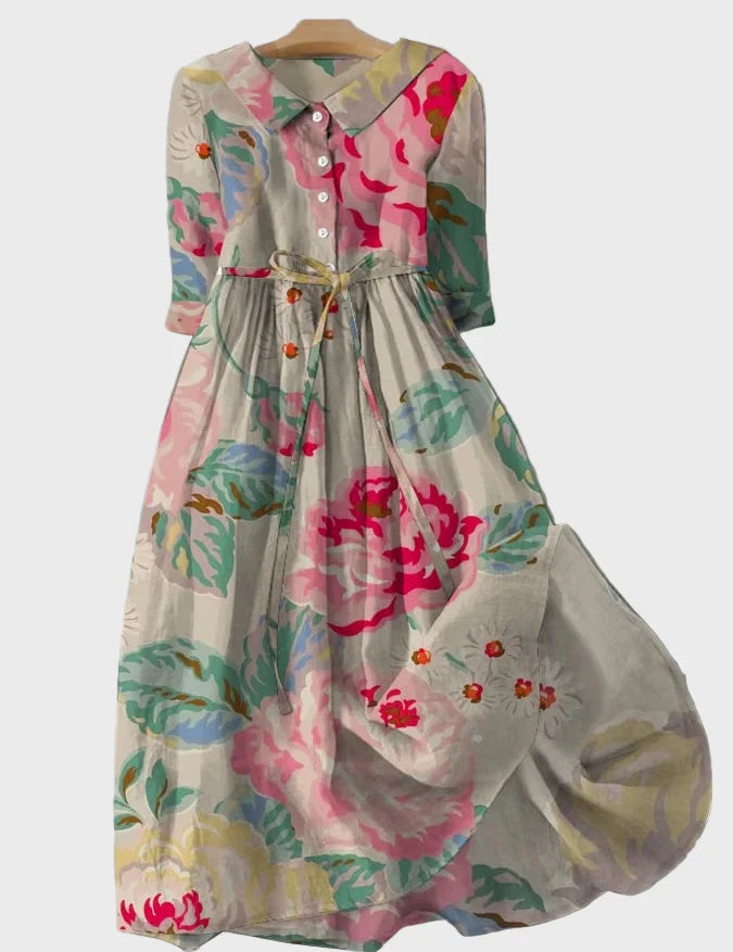 Boho Květinové Šaty Dlouhé Letní Lněný Materiál Elegantní