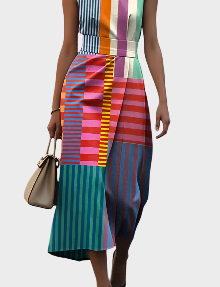 Šaty Bez Rukávů S Geometrickým Vzorem Elegantní Střih