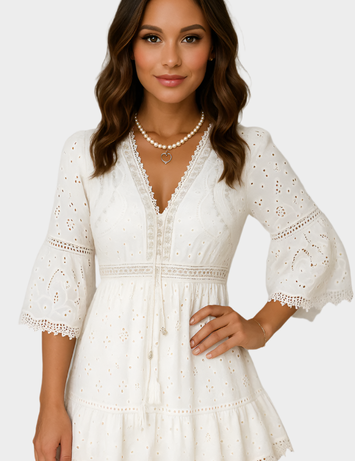 Bohémské Maxi Šaty Krajkou Bílé Barvy Letní Vzhled