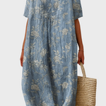 Elegantní linie tohoto letního šatu vyzařuje jednoduchost a umělecký nádech. Vychutnejte si léto se stylem, který volně dýchá a nechává vaši osobnost zazářit — na pláži, ve městě i na večerní procházce.