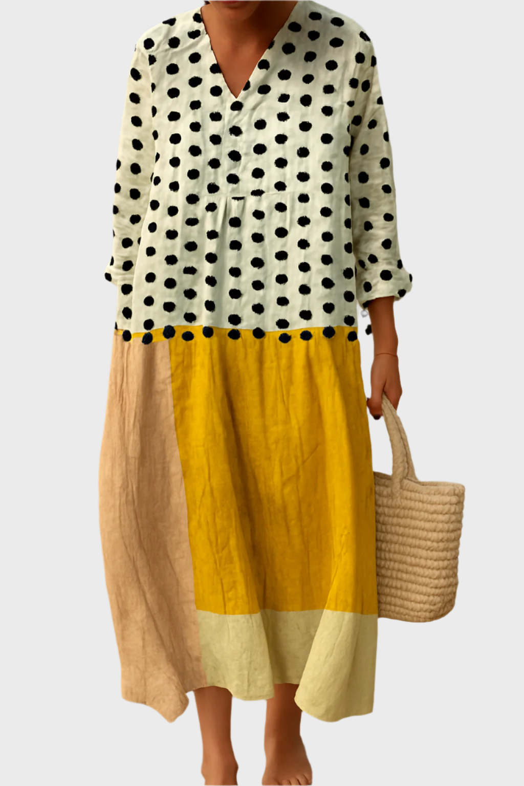 Zažijte atmosféru léta s šaty Přírodní krása — lehký, umělecky působící kousek, který tančí ve větru a dodá vám svobodu, krásu a pohodlí na každém kroku. Lehký materiál a volná, plynulá silueta vám umožní cítit se lehce i sebejistě po celý den i večer.