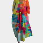 Objevte svůj tvůrčí výraz v těchto barevných šatech s výrazným vzorem, který připomíná dílo moderního umění. Odvážné barevné tahy a volné dodávají eleganci, pohodlí a nenápadný styl – ideální pro ženy, které milují kreativní vyjádření.