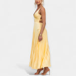 Žluté Plisované Maxi Šaty SV Výstřihem Letní Elegance