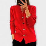 Objevte Marij – dámský svetr s výstřihem do V ve vintage preppy stylu, který spojuje teplo a eleganci pro každodenní nošení během zimy. Tento cardigan z hustého, měkkého materiálu nabízí komfort a klasický vzhled, jenž se snadno kombinuje s vašimi oblíbenými kousky.
