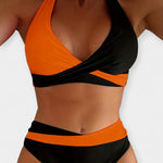 Překřížený Výstřih Bikini Dvoudílné Plavky U Krku Letní