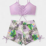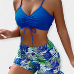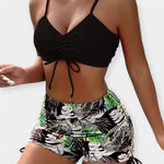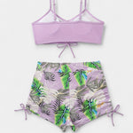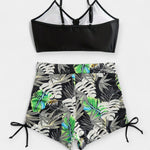 Vysokopásové Dvoudílné Bikini s Tropickým Vzorem a Ramínky