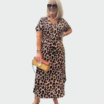 Okouzlující šaty s leopardím potiskem a výrazným V výstřihem spojují eleganci a pohodlí pro každodenní nošení i speciální příležitosti. Leopardí vzor dodává dynamický a moderní charakter, díky kterému vyniknete v každé situaci.