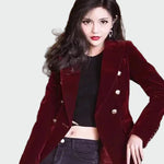 • Dvojité zapínání s elegantními knoflíky dodává saků výrazný a zároveň vkusný detail.