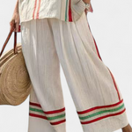 Inspirován mořským vánkem a jasnými tóny léta, Středomořský Daisy set z lněo-bambusové látky s elegantními červenými a zelenými pruhy nabízí vyvážený mix klasiky a radosti. Přírodní materiál a plynulý spad poskytují lehkost a pohodlí pro každodenní i slavnostnější momenty.