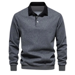 The Adrian Casual Polo Sweater offers a relaxed yet refined look, crafted for those who appreciate comfort without sacrificing sophistication.